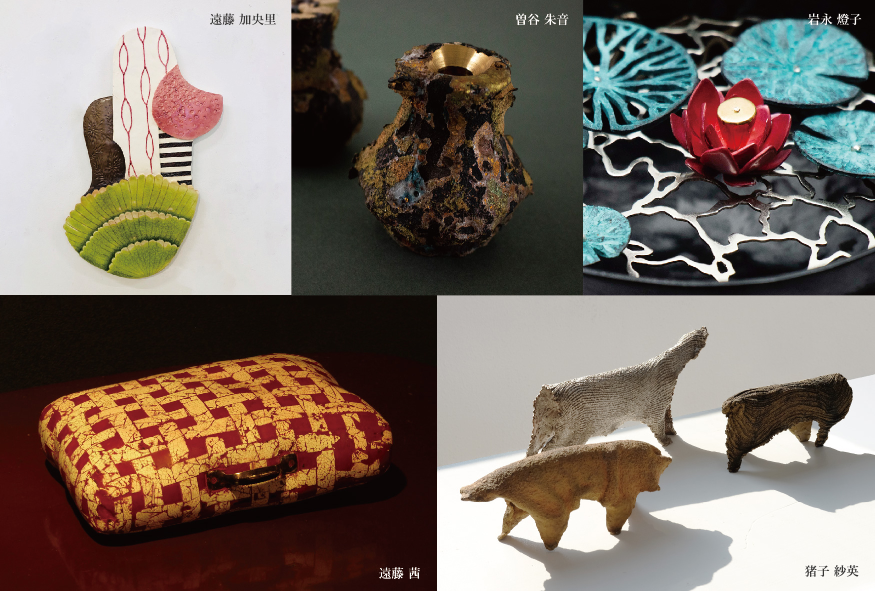 KOUGEI Art fare 2019 会場: ホテル KUMU 会期: 2019年11月15日(金)〜 11月17日(日) # 宮永 春香 # 藪内 公美 # 中田 真裕 # 鵜飼 康平 # 上田 剛 # 片瀬 有美子